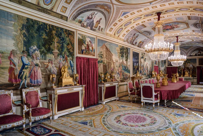 ... y obras de arte únicas como la sillería neobarroca de una de las antecámaras.